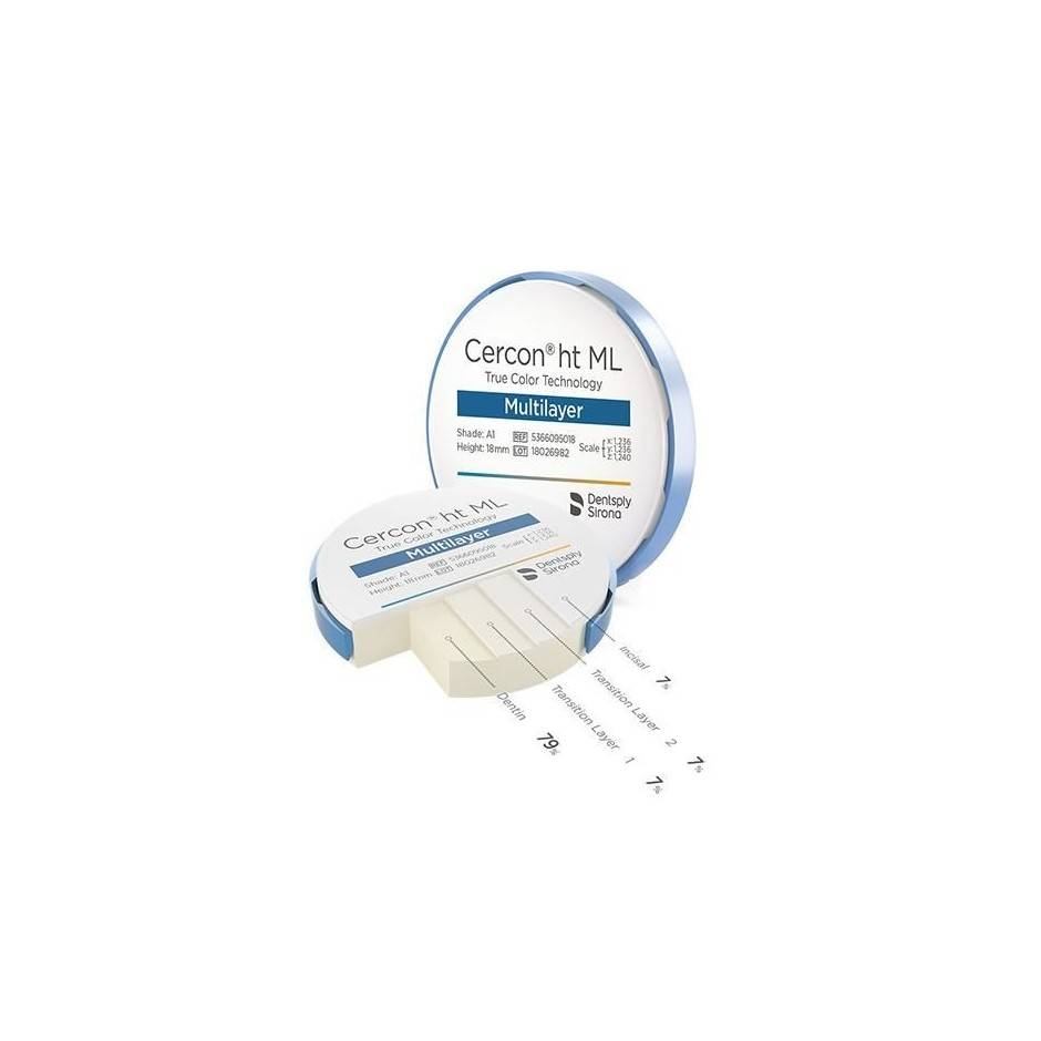 CERCON® ht ML este discul hibrid de zirconiu care combina estetica naturala a discului XTML la nivel incizal (750 MPa) cu rezistenta discului HT la nivel de dentina (1.200 MPa) pentru o gama extinsa de aplicatii, de la o coroana solo pana la o punte de 14 elemente – fara a conditiona plasarea elementelor in disc, chiar si pentru punti extinse*