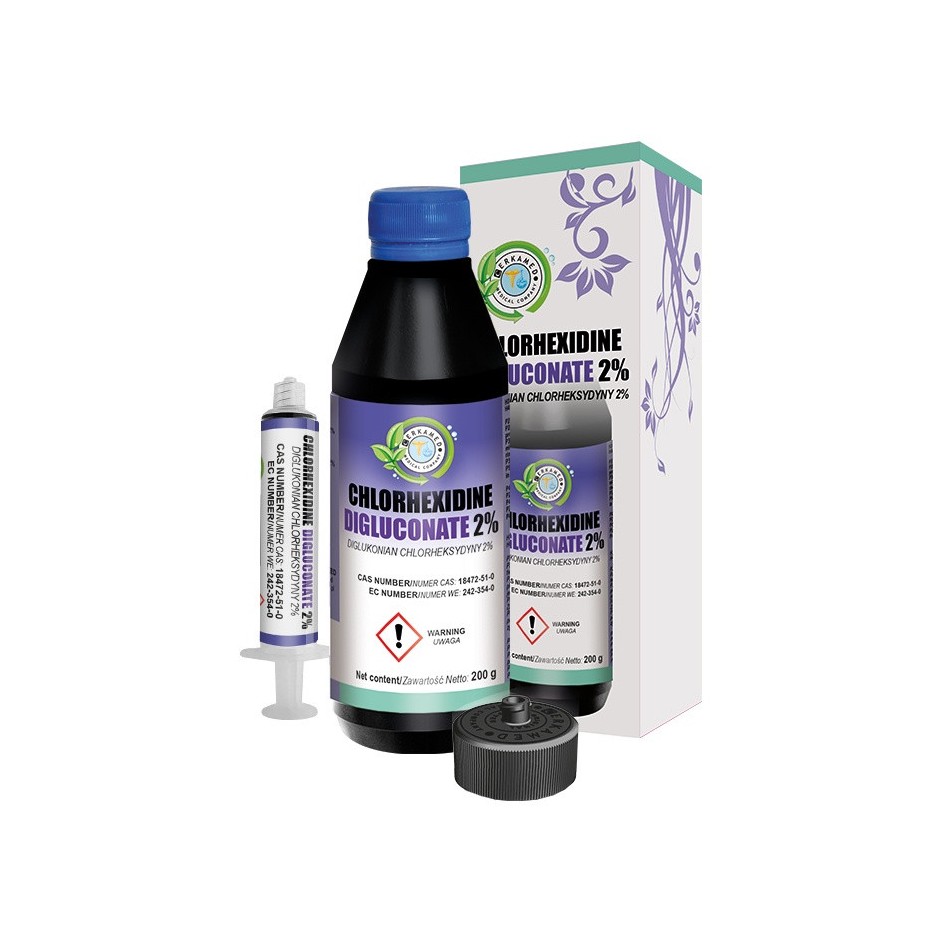 Clorhexidina digluconat 2% - lichid de clatire a canalelor radiculare in timpul tratamentului endodontic, agent antimicrobian.