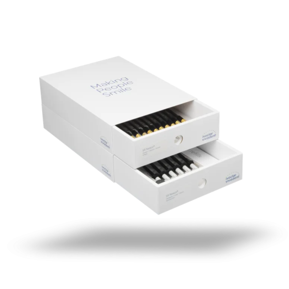 Kitul permite reproducerea fidela a nuantelor si efectelor optice naturale, fiind potrivit pentru restaurari complexe, inclusiv in zone estetice. Include, de asemenea, sistemele de bonding SR Link si SR Connect, precum si lichide si accesorii pentru un flux complet de lucru in laborator.